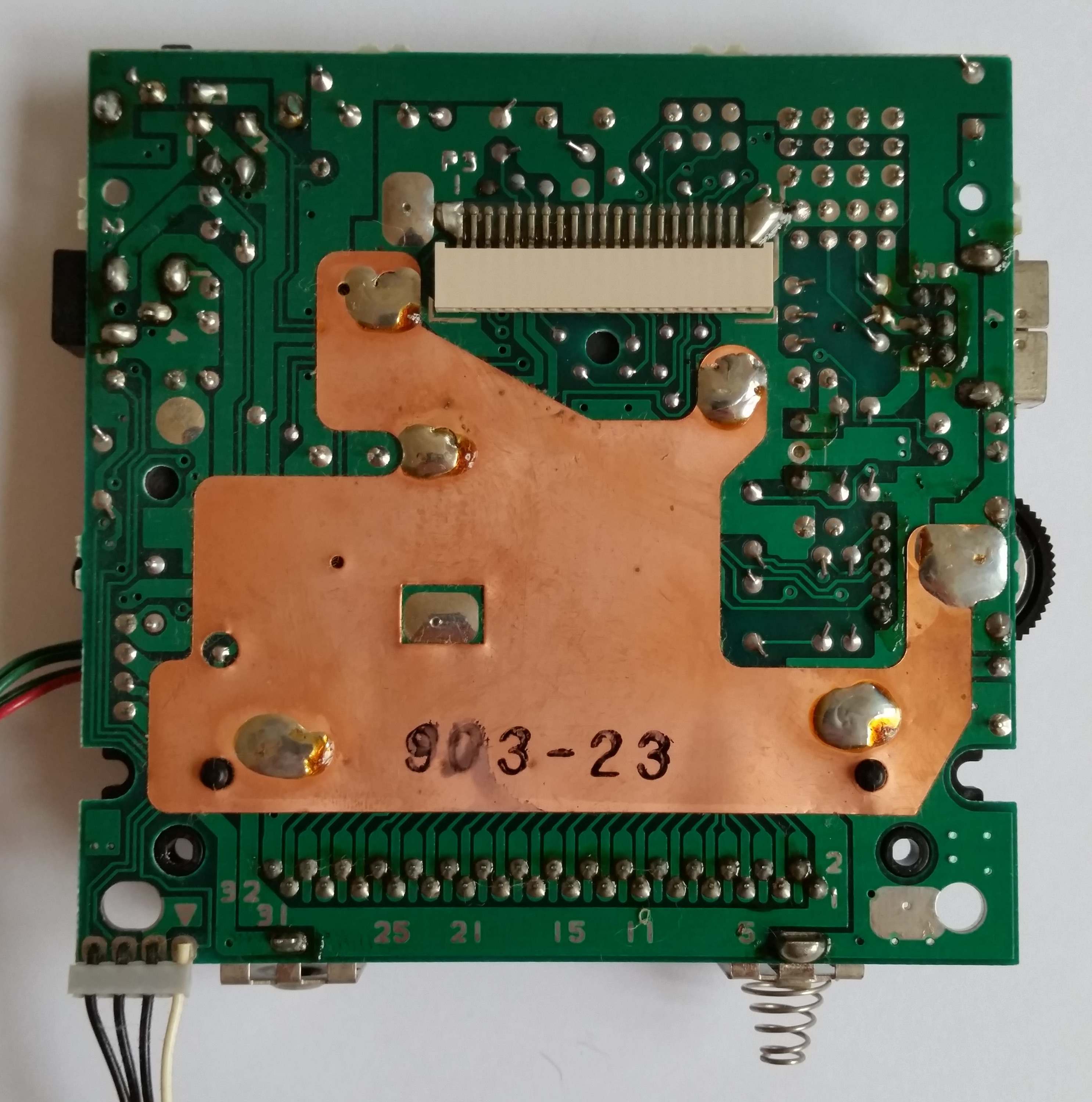 - LCD had massive amount of missing columns: -> TODO: try to repair - Display cover fell off: -> Cleaned old glue -> Applied double sided tape -> Cover seems to be original - Link port cover was missing: -> Attached replica part - D-Pad silicon pad disintegrated while cleaning -> Attached replica part